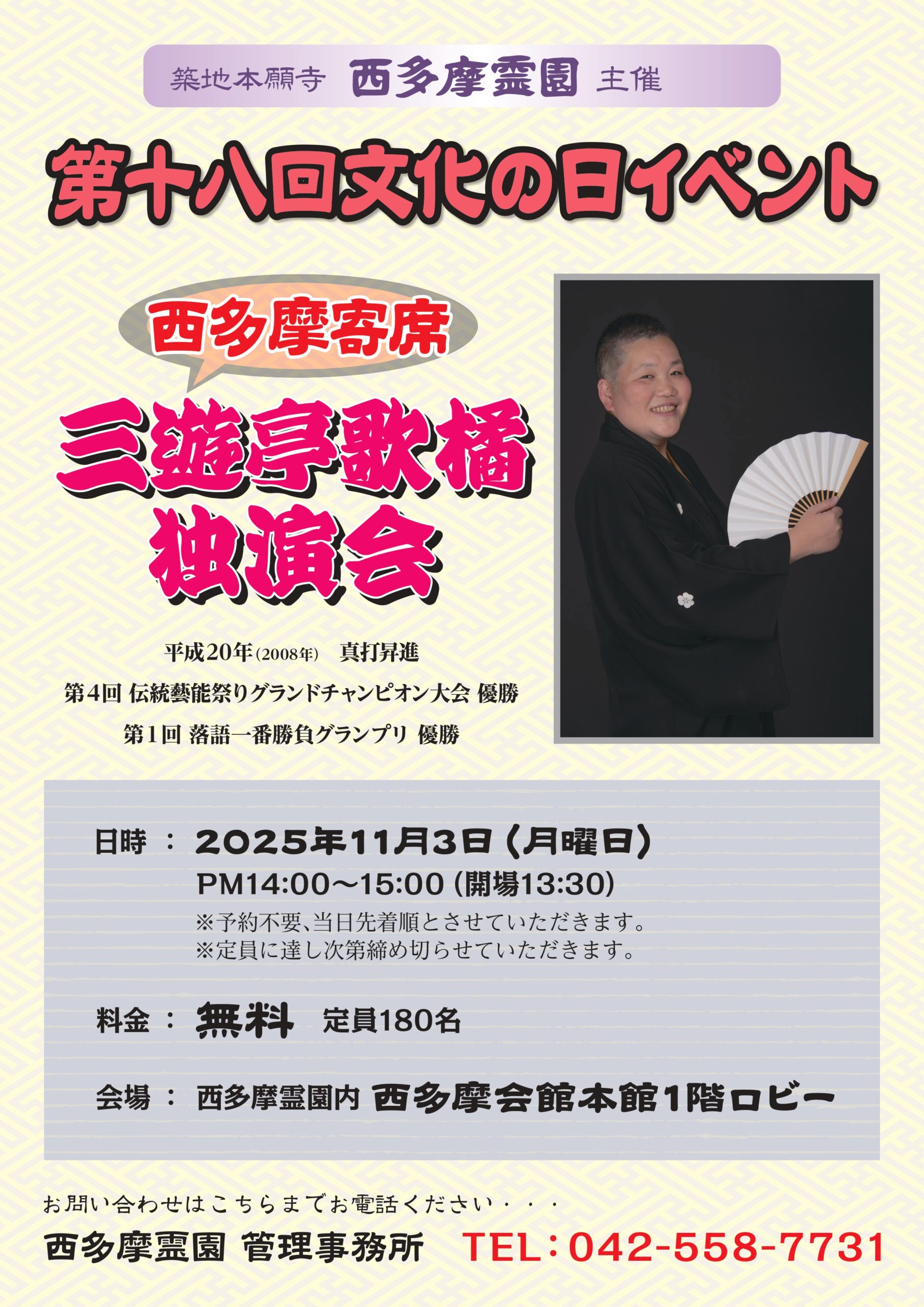 日頃より西多摩霊園にお参りいただき、誠にありがとうございます。