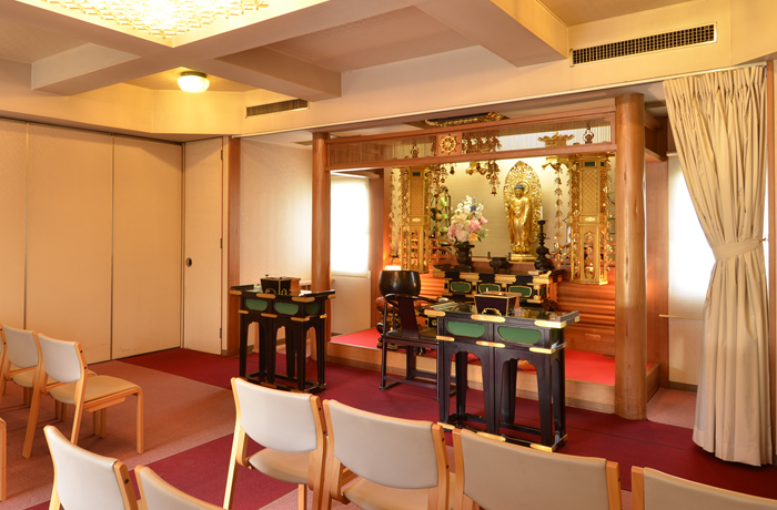 1階には霊園管理事務所、本堂、礼拝堂、ロビー、2階には会席室がございます。