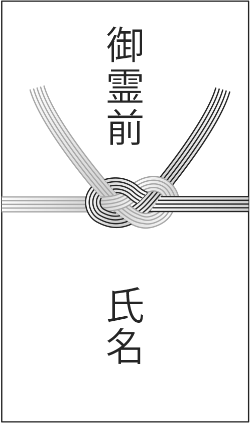 水引:無し 用意ができない時は、無地に双銀の水引の香典袋を代用