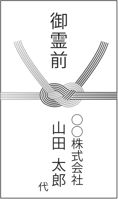 水引の下には会葬者の名前を書きます。会社の代表として弔問する場合や、夫・上司の代理などで弔問している場合の書き方は下記のとおりです。