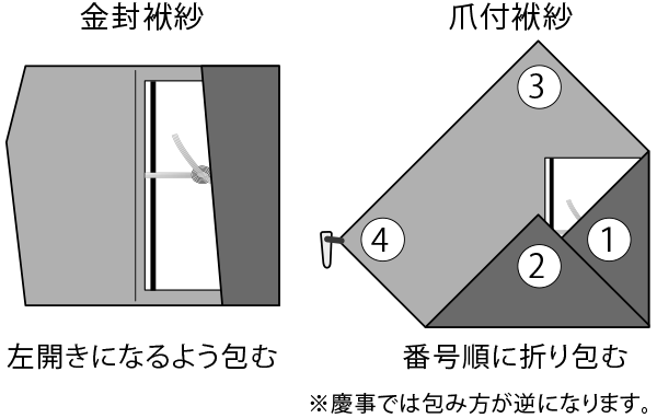 お包みする額によって、袋の質が変わります。購入する際、お包みする金額の目安が書いてありますので、注意書きをよく確かめましょう。