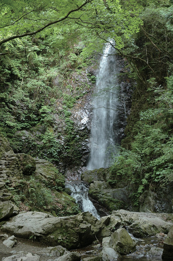 落差は4段で約60m。最下段(落差約26m)の落ち込みにある深い淵はとても神秘的で、古くから大蛇が住むと伝えられてきました。