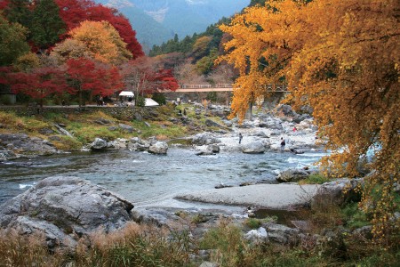 多摩川の支流の中でも最大といわれる秋川。あきる野市から檜原村に及ぶ全長約20kmほどを「秋川渓谷」と呼んでいます。新緑、紅葉など四季折々に表情を変える景色は見ごたえたっぷりです。